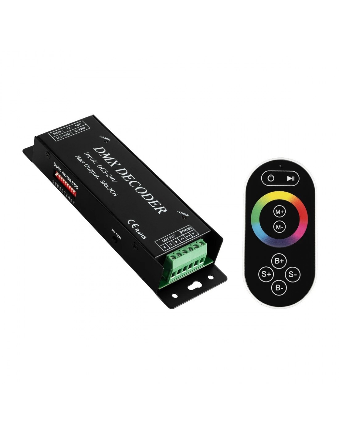 GLOBOSTAR® RGBCONTROLLER 73412 DMX Dimmer / Controller με RF Ασύρματο Χειριστήριο με 3 x 15A 75W Κανάλια DC 5-24V 15A 360W Max IP20 - DMX512 & RF2.4Ghz - Μ26.9 x Π9.6 x Υ4cm - 1 Χρόνος Εγγύηση