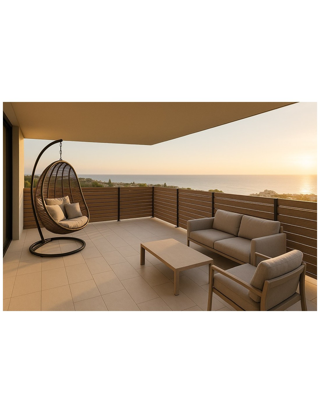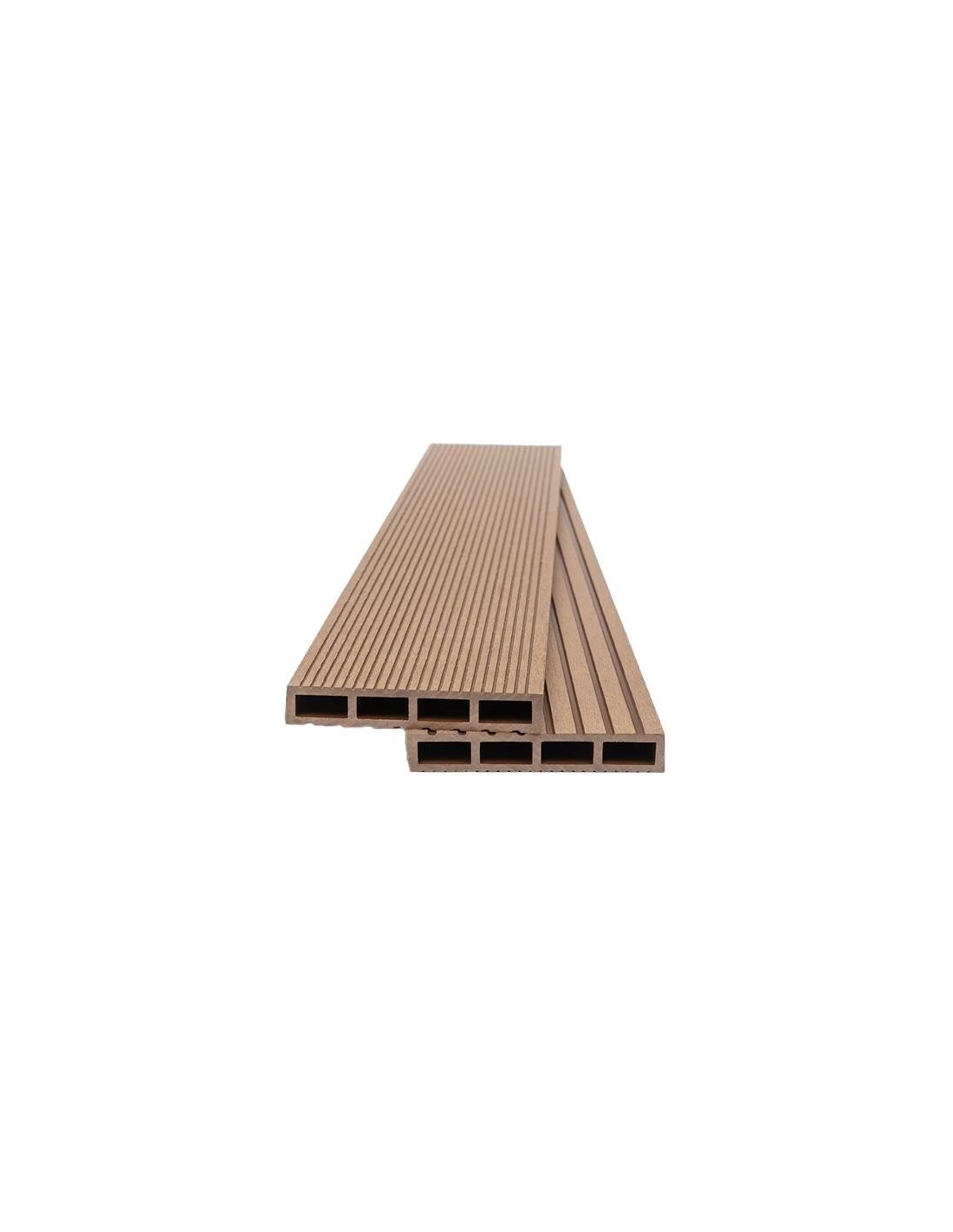 Συνθετικό Deck WPC περίφραξης εξωτερικού χώρου που αποτελείται από 55% ξύλο και 35% HDPE και 10% ρητίνες, UV σταθεροποιητές κλπ. Είναι διπλής όψης με στενό χτένι στη μία όψη και φαρδύ στην άλλη. Η περίφραξη με WPC έχει προσιτή τιμή και είναι κατάλληλη για πολλές εφαρμογές όπως περίφραξη οικοπέδου, κήπου ή πισίνας, εξωτερική περίφραξη, επένδυση τοίχου, φράχτη, αυλόπορτας κτλ.