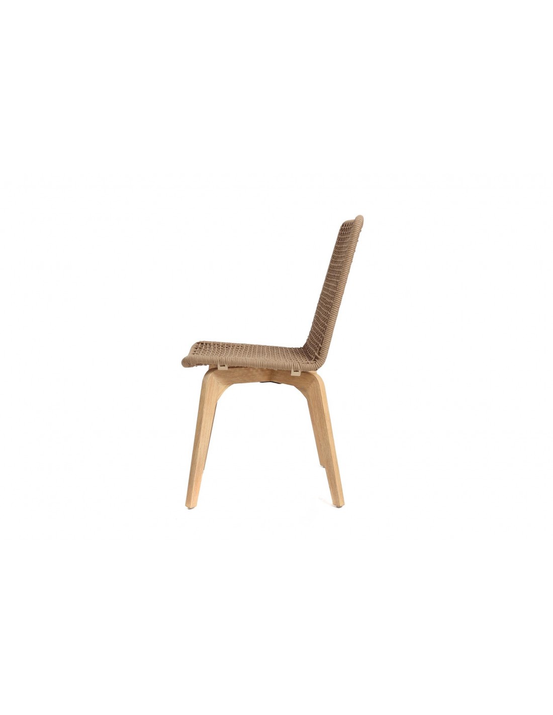 Καρέκλα Τραπεζαρίας Zoe Latte (45x57x88cm) από μεταλλικό πλαίσιο (steel), πλεγμένο με αδιάβροχο ναυτικό μπεζ σχοινί 6 χιλιοστών και ξύλινα πόδια ευκάλυπτου. Ιδανική για εξωτερικό χώρο. Θέλει συναρμολόγηση. Συσκευασία 1 δέμα ανά 2 τεμάχια.